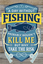 A day without fishing probably wouldn't kill me but why take the risk / 8x12 Indoor/Outdoor Recycled Plastic Wall Art