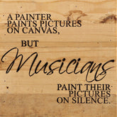 A painter paints pictures on canvas, but musicians paint their pictures on silence. / 10"x10" Reclaimed Wood Sign