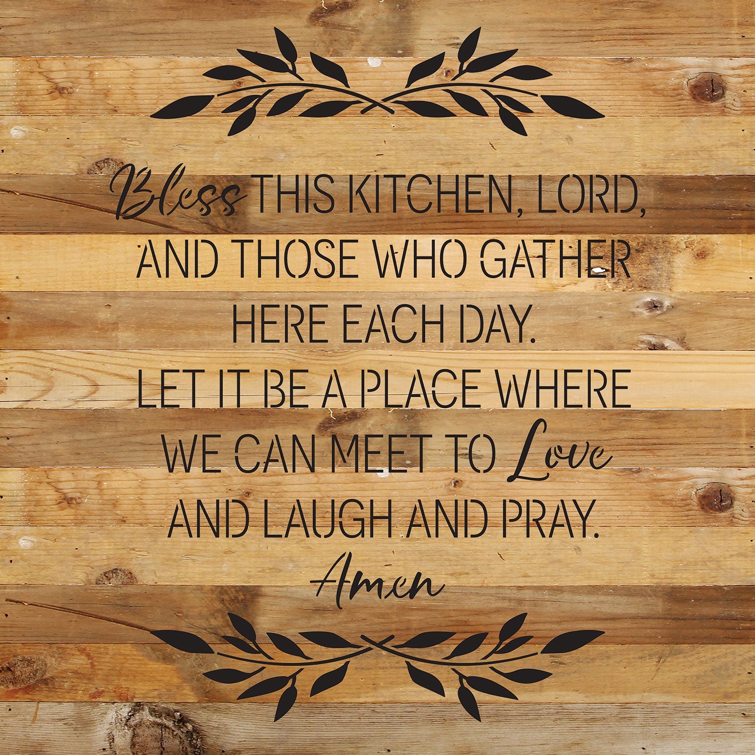 Bless this kitchen, Lord, and those who gather here each day. Let it be a place where we can meet to love and laugh and pray. Amen / 14x14 Reclaimed Wood Wall Decor