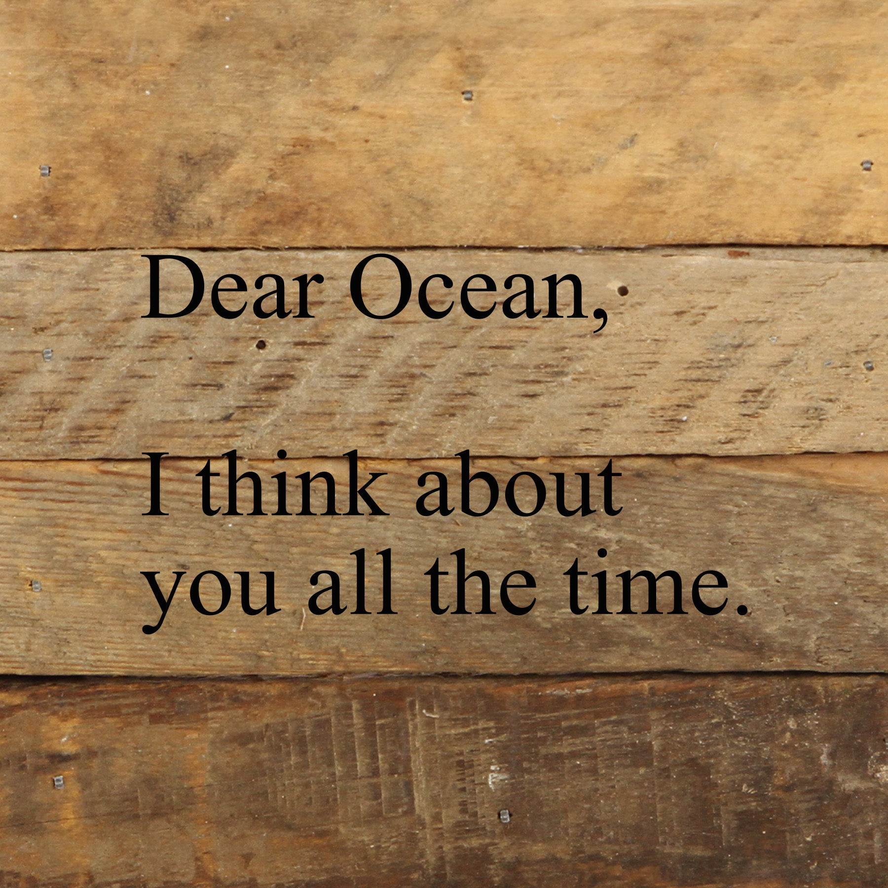 Dear Ocean, I think about you all the time. / 6"x6" Reclaimed Wood Sign