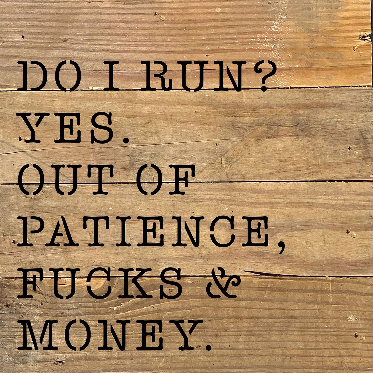 Do I run? Yes. Out of patience, fucks and money / 8x8 Blue Whisper Reclaimed Wood Wall Decor