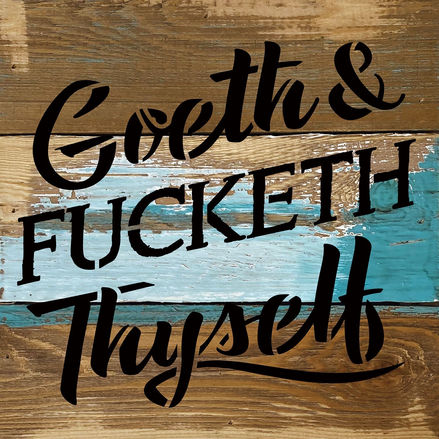 Goeth & Fucketh Thyself / 8x8 Blue Whisper Reclaimed Wood Wall Decor