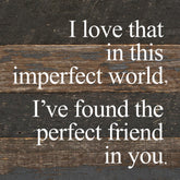 I love that in this imperfect world, I've found the perfect friend in you. / 6"x6" Reclaimed Wood Sign