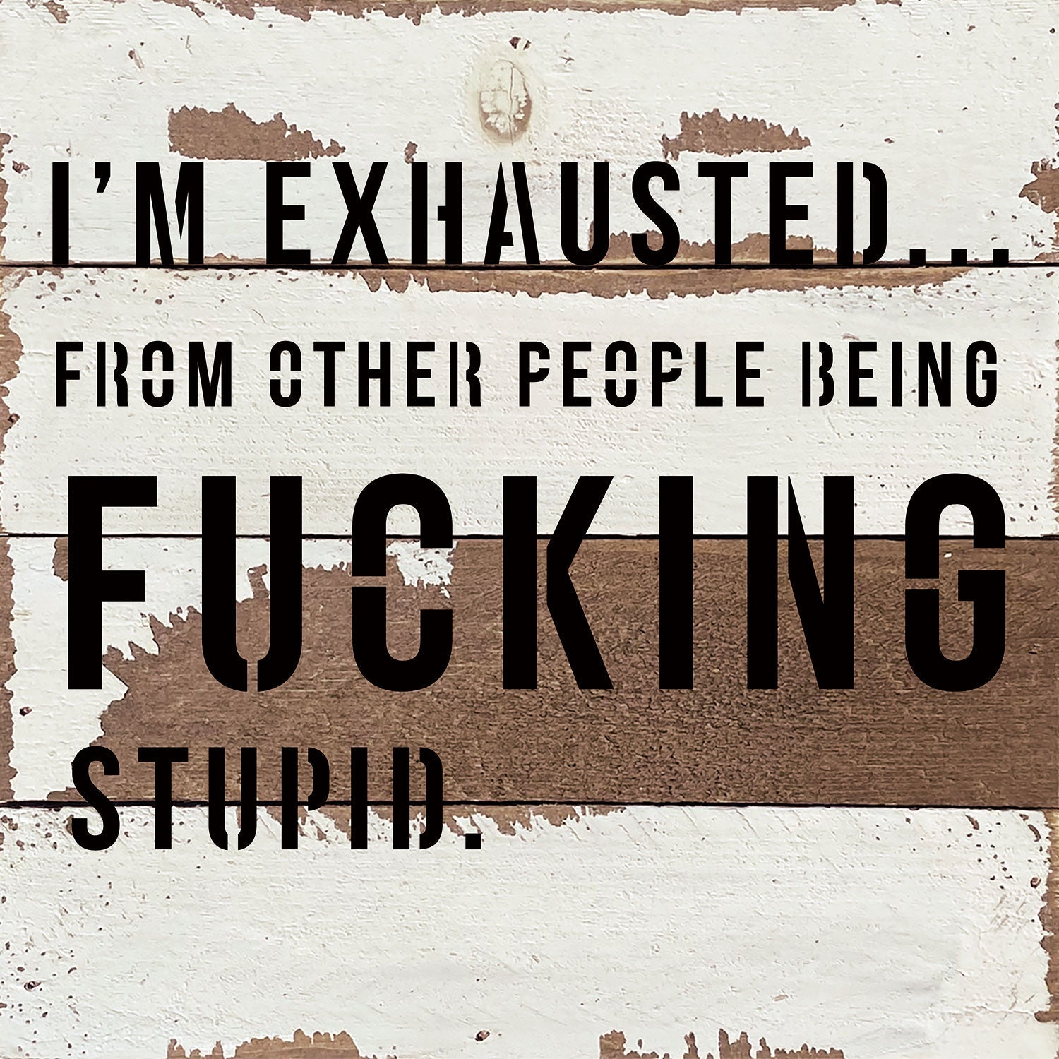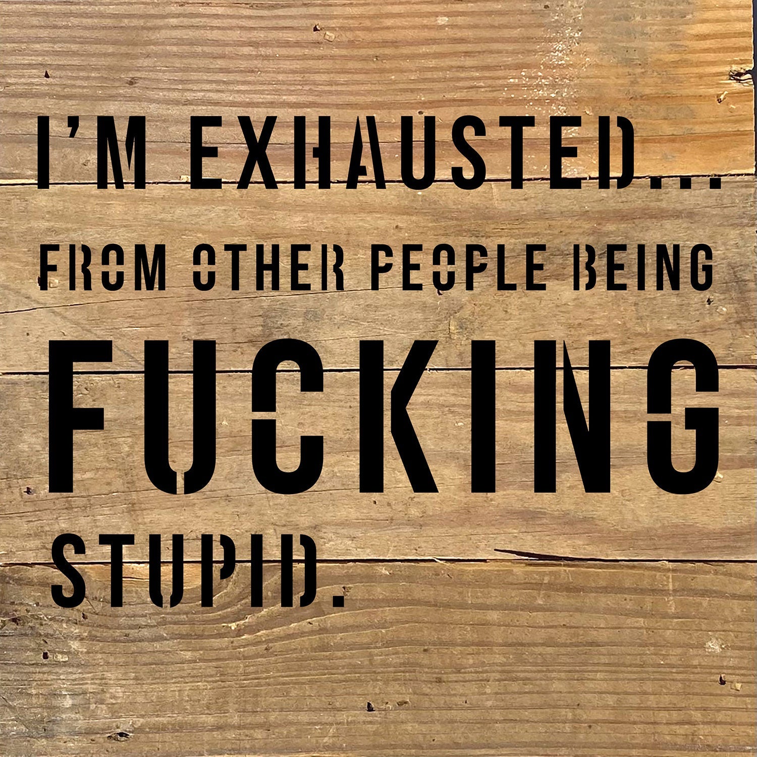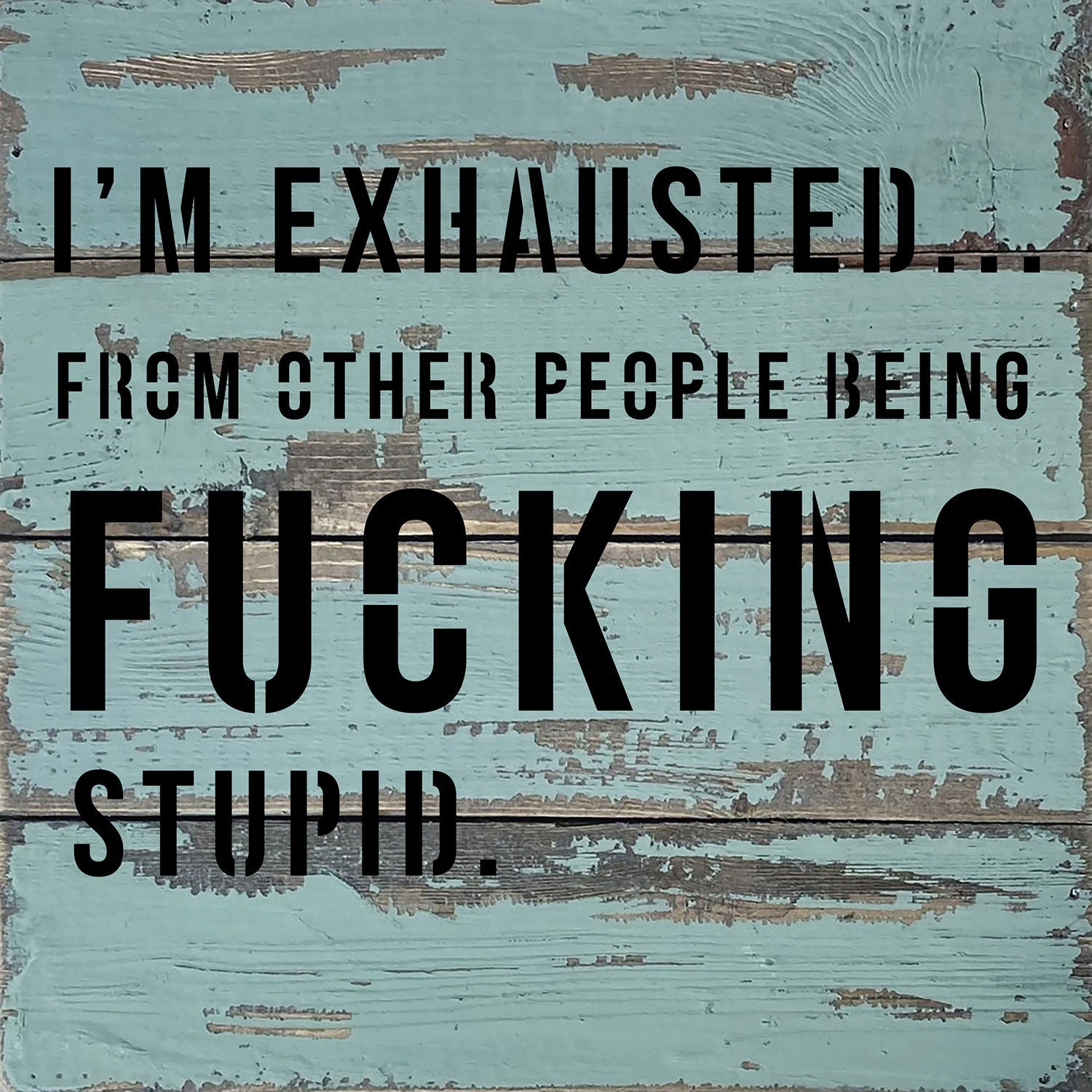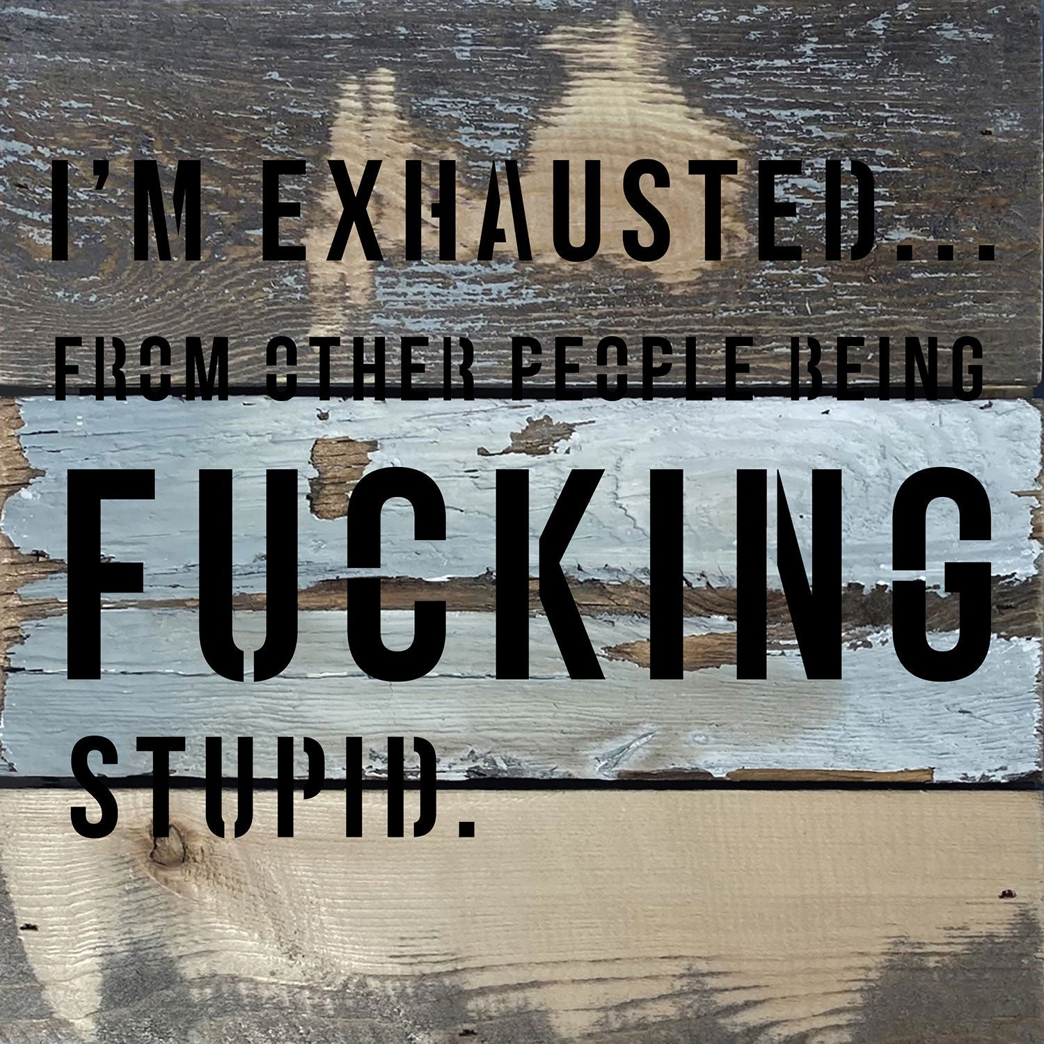 I'm Exhausted ... from other people being fucking stupid / 8x8 Blue Whisper Reclaimed Wood Wall Decor