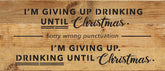 I'm giving up drinking until Christmas. Sorry wrong punctuation. I'm giving up. Drinking until Christmas / 14x6 Reclaimed Wood Wall Decor