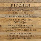 In this kitchen, We believe happiness is homemade. We season with kindness. We share portions with love... / 28x28 Reclaimed Wood Wall Decor