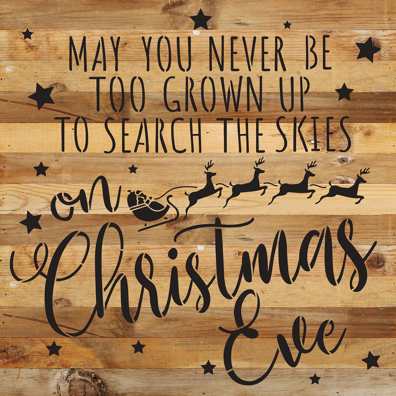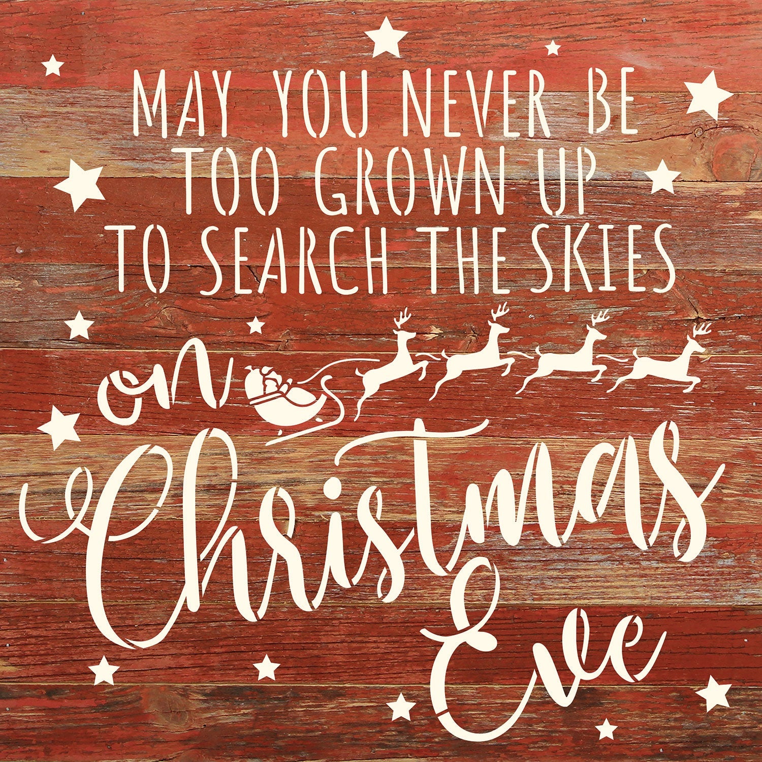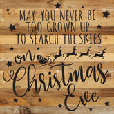 May you never be too grown up to search the skies on Christmas Eve / 14x14 Reclaimed Wood Wall Decor