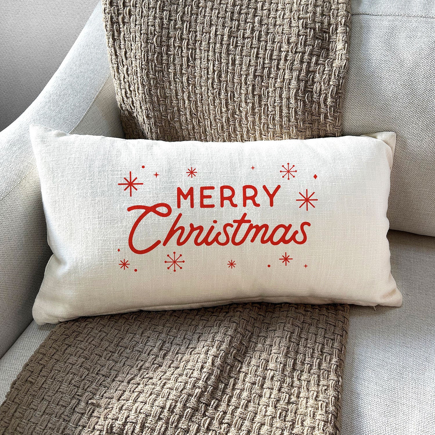 Merry Christmas / Natural Lumbar Pillow Cover