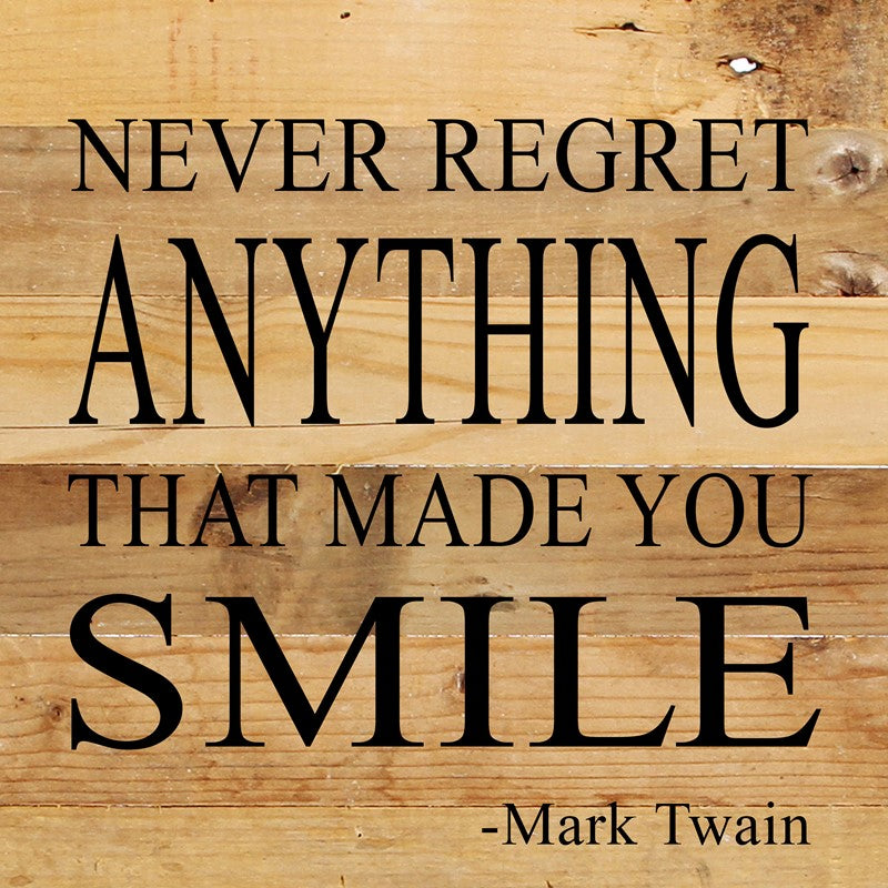 Never regret anything that made you smile. -Mark Twain / 10"x10" Reclaimed Wood Sign