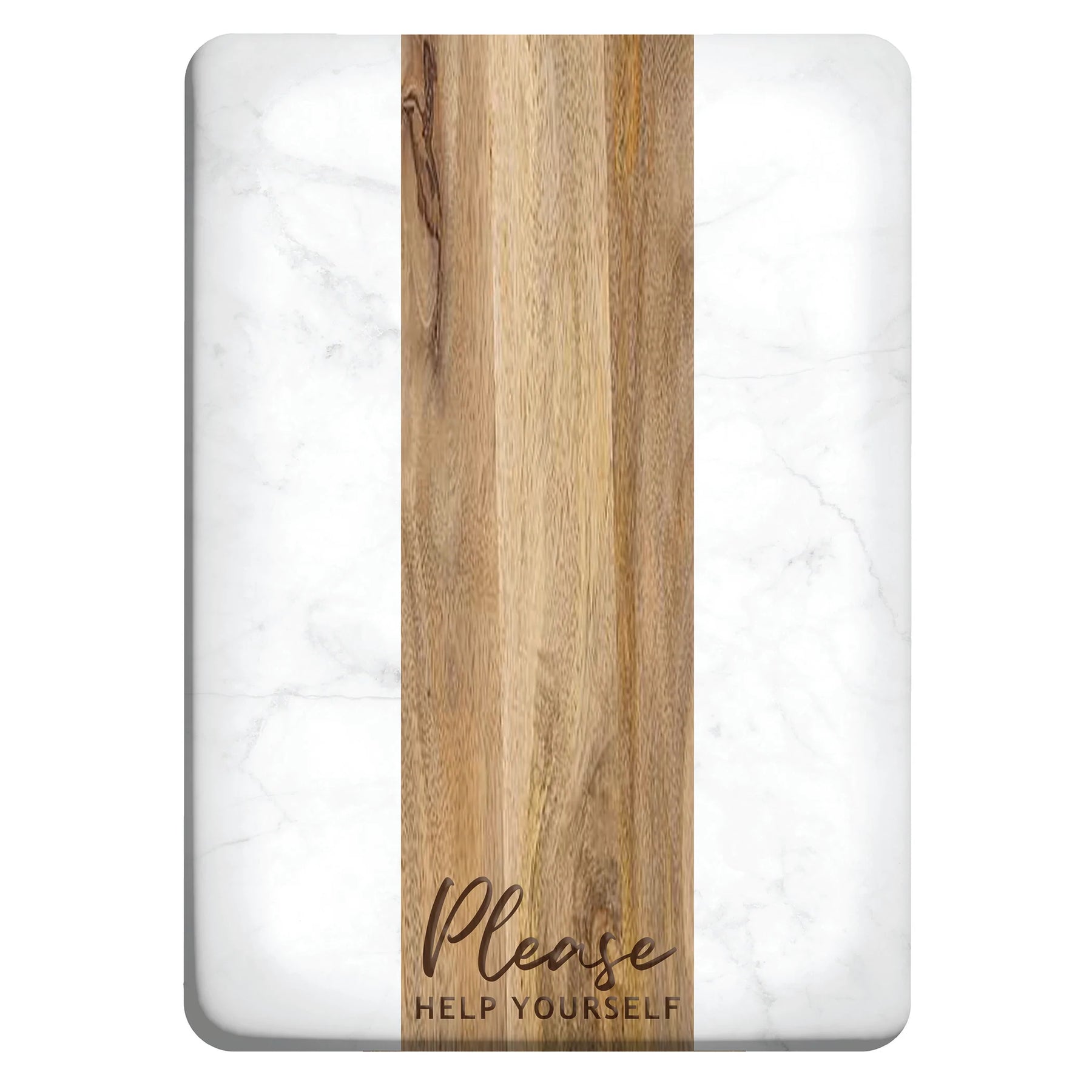 Our marble & mango wood serving boards are sized at 14x10.25.