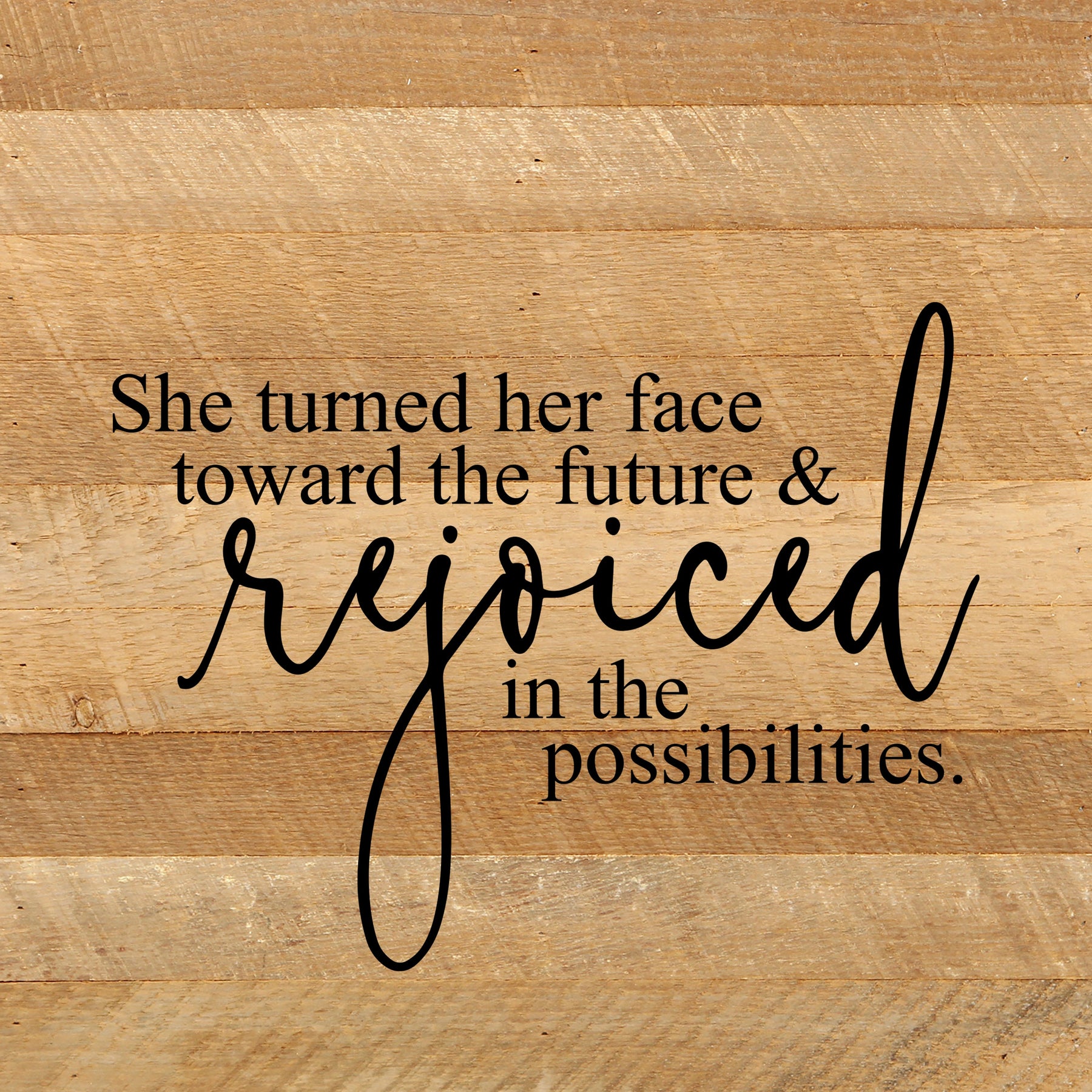 She turned her face toward the future & rejoiced in the possibilities / 10"x10" Reclaimed Wood Sign