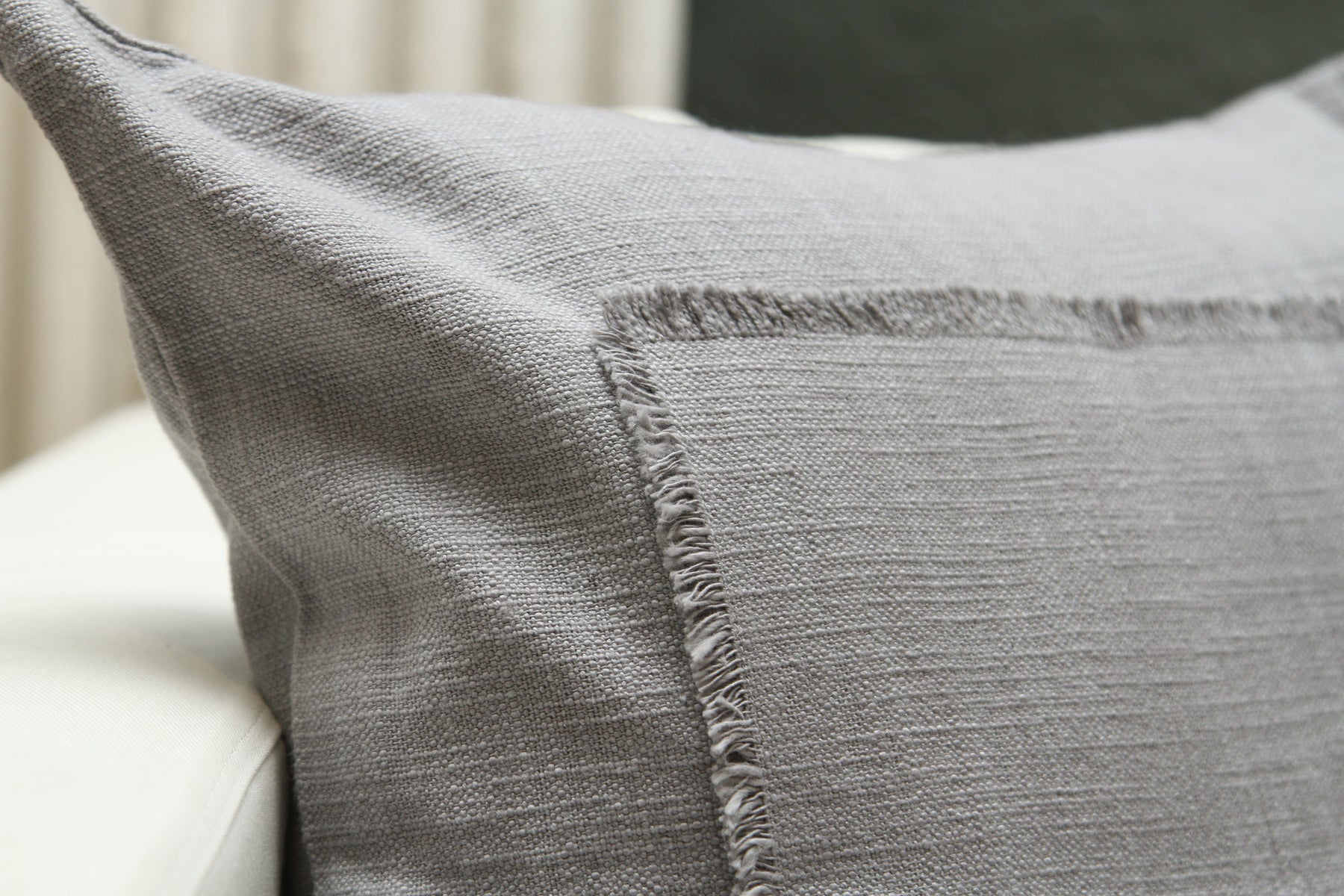 This slub cotton fabric showcases texture and dimension making any design pop. Features a fringe border and fringe patch on front.
