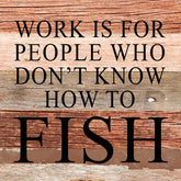 Work is for people who don't know how to fish / 6"x6" Reclaimed Wood Sign