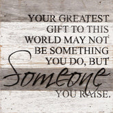Your greatest gift to this world may not be something you do, but someone you raise. / 10"x10" Reclaimed Wood Sign